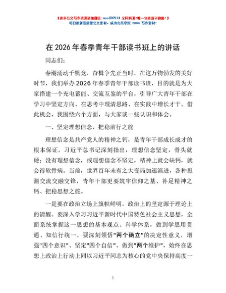 / 在2026年春季青年干部读书班上的讲话