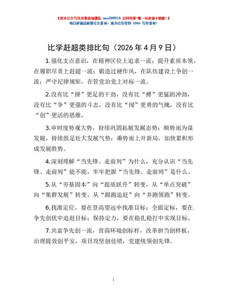 / 比学赶超类排比句(2026年4月9日)