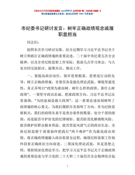 / 市纪委书记研讨发言:树牢正确政绩观 忠诚履职显担当