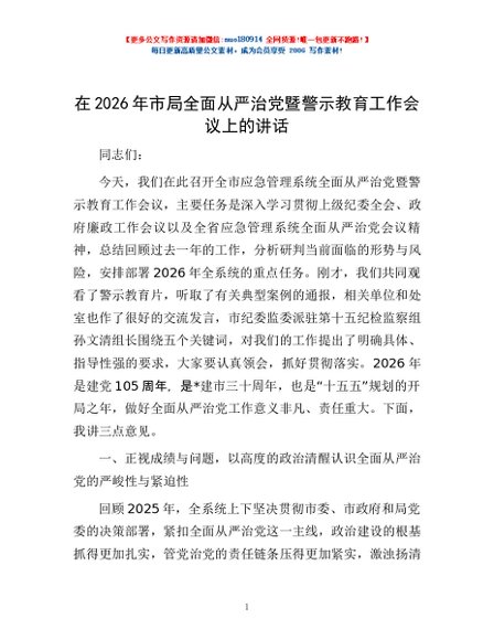 / 在2026年市局全面从严治党暨警示教育工作会议上的讲话