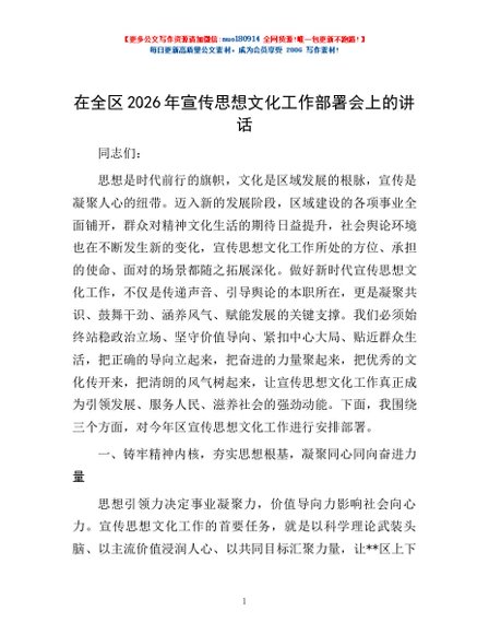 / 在全区2026年宣传思想文化工作部署会上的讲话