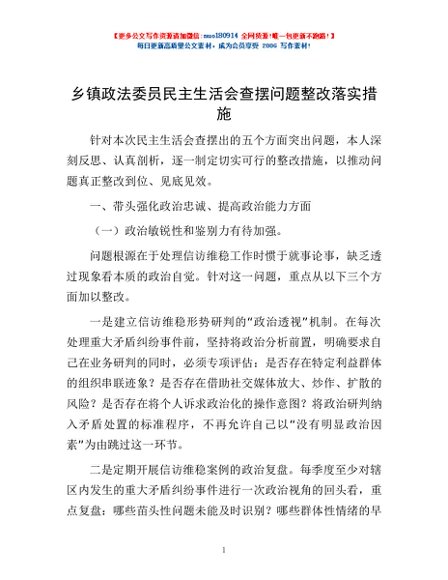 / 乡镇政法委员民主生活会查摆问题整改落实措施