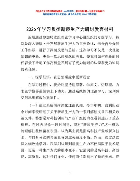 / 2026年学习贯彻新质生产力研讨发言材料