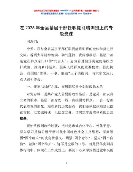 / 在2026年全县基层干部任职提能培训班上的专题党课