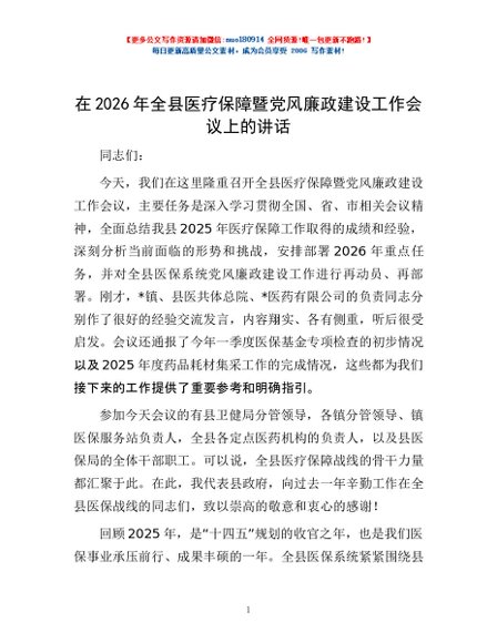 / 在2026年全县医疗保障暨党风廉政建设工作会议上的讲话
