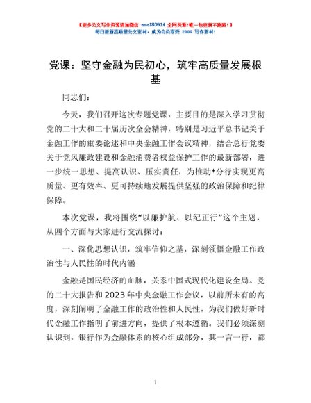 / 党课:坚守金融为民初心,筑牢高质量发展根基