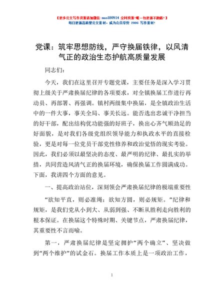 / 党课:筑牢思想防线,严守换届铁律,以风清气正的政治生态护航高质量发展