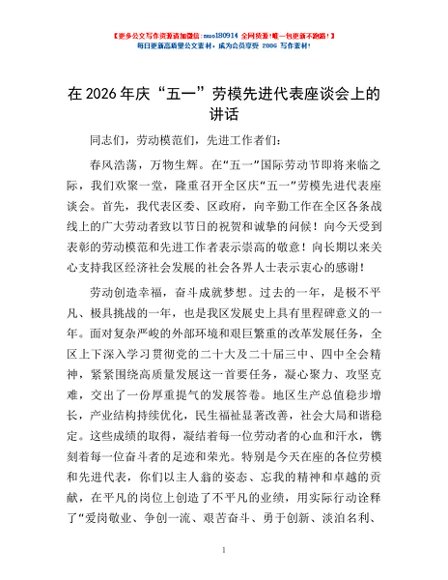 / 在2026年庆“五一”劳模先进代表座谈会上的讲话
