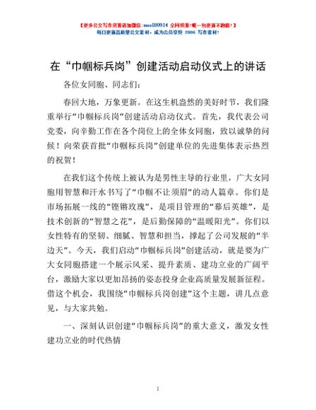 / 在“巾帼标兵岗”创建活动启动仪式上的讲话
