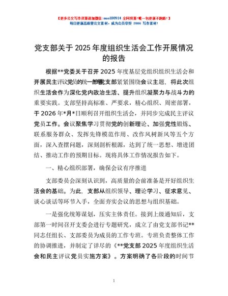 / 党支部关于2025年度组织生活会工作开展情况的报告