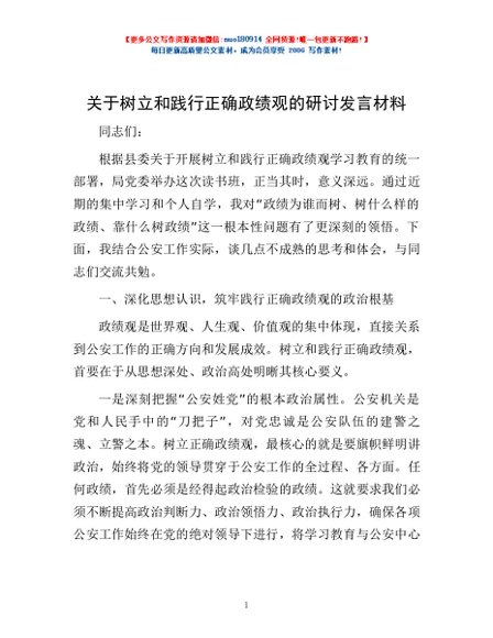 / 关于树立和践行正确政绩观的研讨发言材料