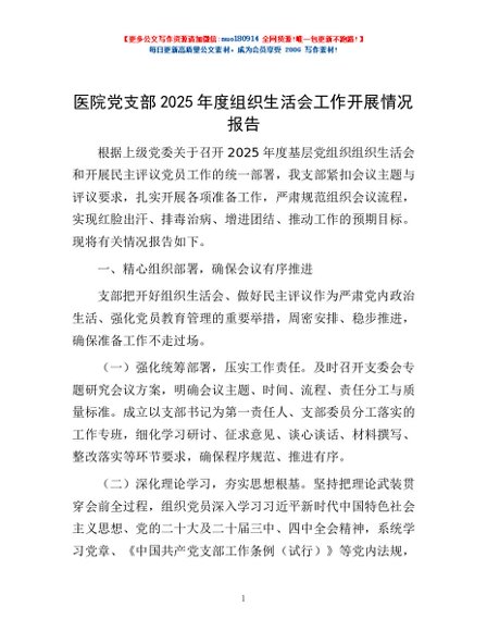 / 医院党支部2025年度组织生活会工作开展情况报告