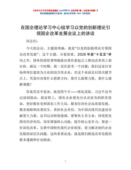 / 在国企理论学习中心组学习以党的创新理论引领国企改革发展会议上的讲话