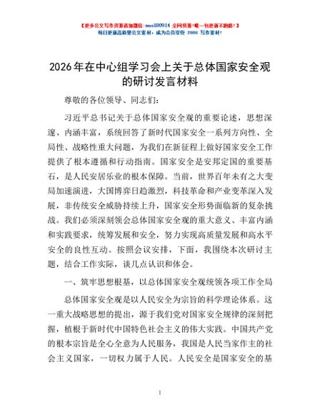 / 2026年在中心组学习会上关于总体国家安全观的研讨发言材料