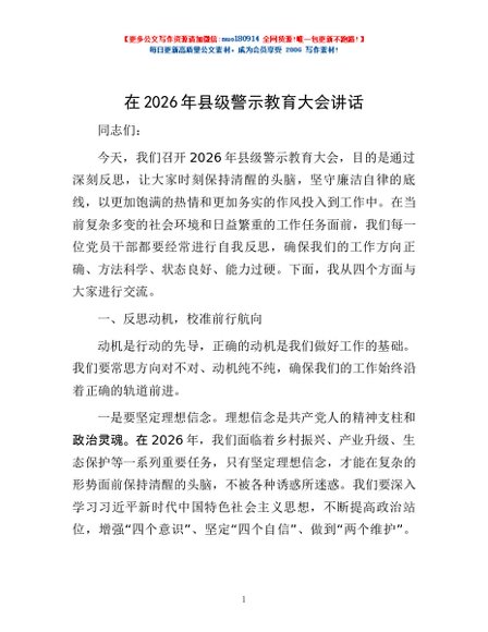 / 在2026年县级警示教育大会讲话