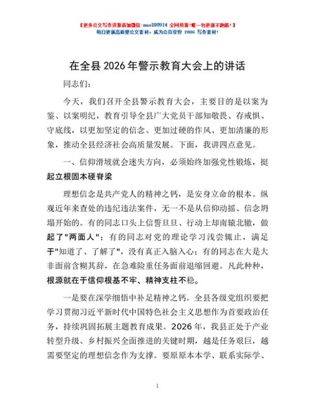 / 在全县2026年警示教育大会上的讲话