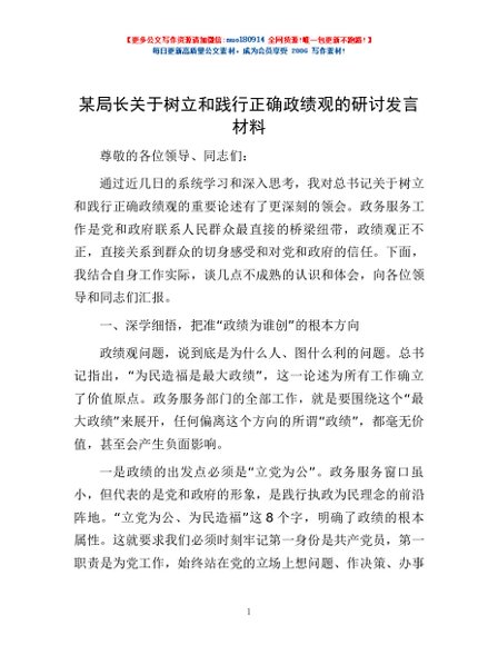 / 某局长关于树立和践行正确政绩观的研讨发言材料