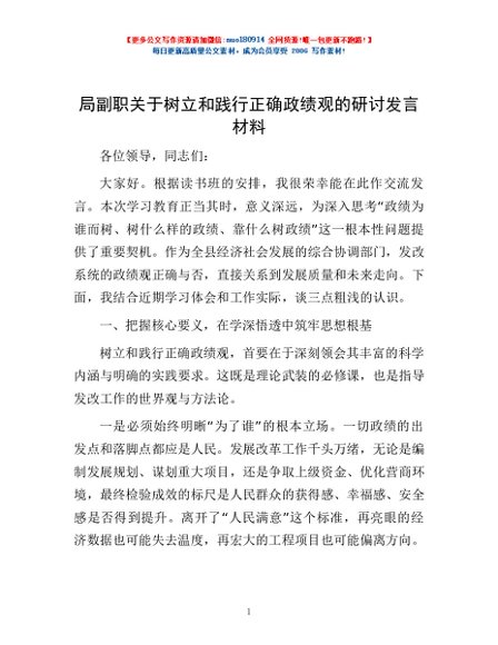 / 局副职关于树立和践行正确政绩观的研讨发言材料