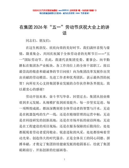 / 在集团2026年“五一”劳动节庆祝大会上的讲话