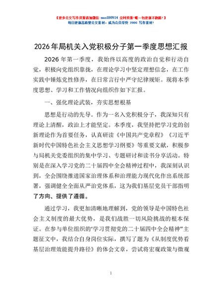 / 2026年局机关入党积极分子第一季度思想汇报