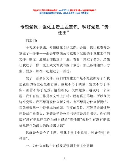 专题党课:强化主责主业意识,种好党建“责任田”