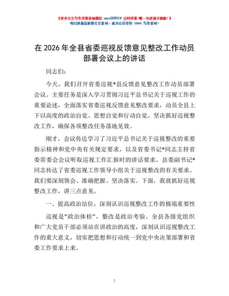 / 在2026年全县省委巡视反馈意见整改工作动员部署会议上的讲话