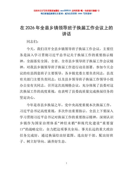 / 在2026年全县乡镇领导班子换届工作会议上的讲话