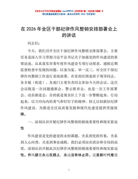 / 在2026年全区干部纪律作风整顿安排部署会上的讲话