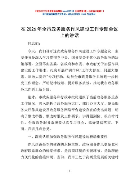 / 在2026年全市政务服务作风建设工作专题会议上的讲话