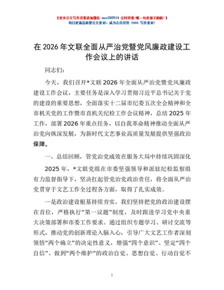 / 在2026年文联全面从严治党暨党风廉政建设工作会议上的讲话