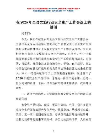/ 在2026年全县文旅行业安全生产工作会议上的讲话