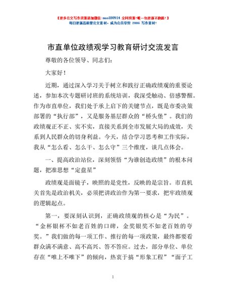 / 市直单位政绩观学习教育研讨交流发言
