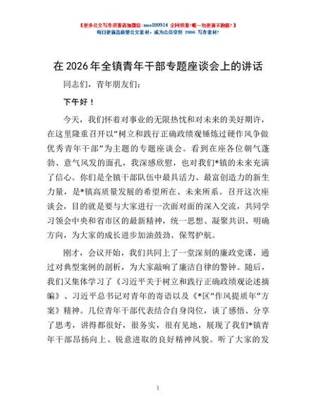 / 在2026年全镇青年干部专题座谈会上的讲话
