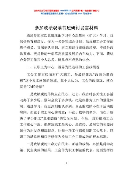 / 参加政绩观读书班研讨发言材料