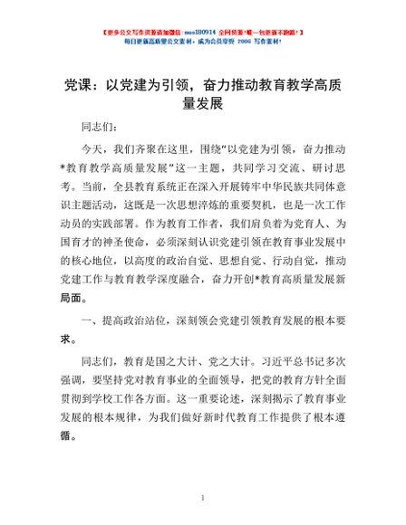 / 党课:以党建为引领,奋力推动教育教学高质量发展