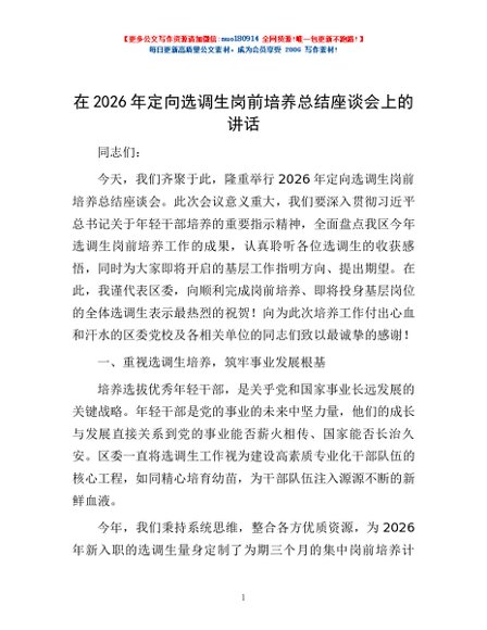 / 在2026年定向选调生岗前培养总结座谈会上的讲话