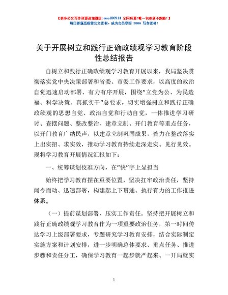 / 关于开展树立和践行正确政绩观学习教育阶段性总结报告