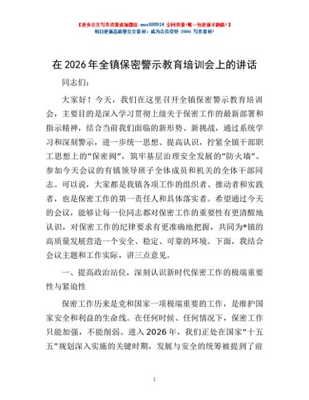 / 在2026年全镇保密警示教育培训会上的讲话