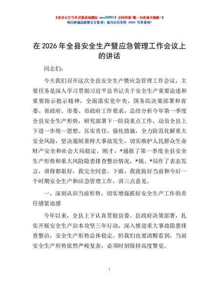 / 在2026年全县安全生产暨应急管理工作会议上的讲话