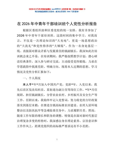 / 在2026年中青年干部培训班个人党性分析报告