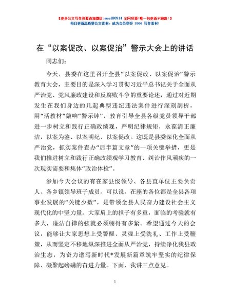 / 在“以案促改、以案促治”警示大会上的讲话