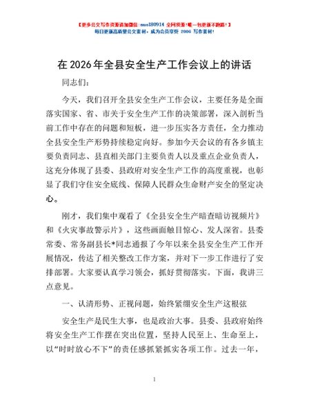 / 在2026年全县安全生产工作会议上的讲话