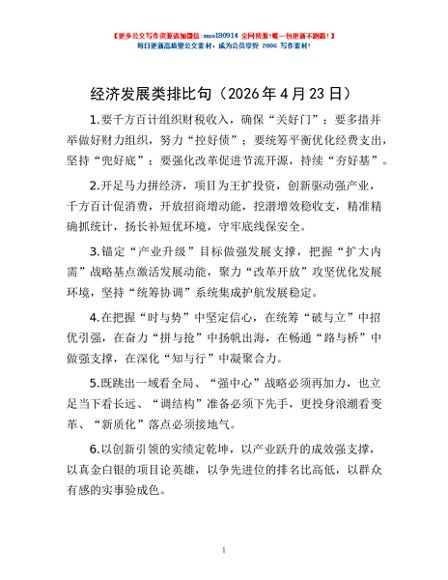 / 经济发展类排比句(2026年4月23日)