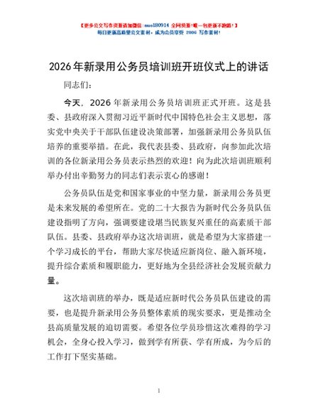 / 2026年新录用公务员培训班开班仪式上的讲话