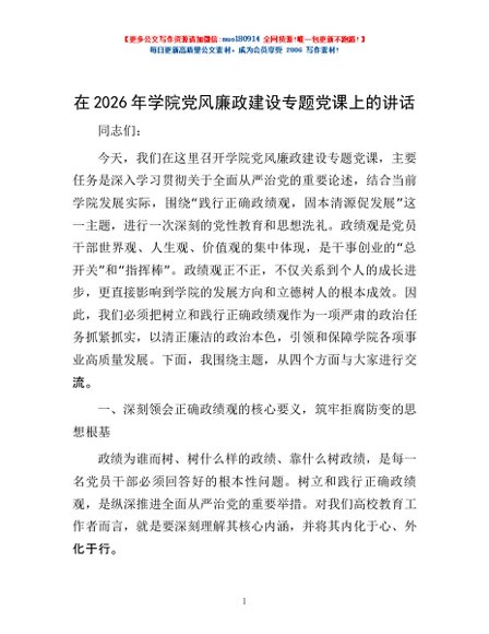 / 在2026年学院党风廉政建设专题党课上的讲话