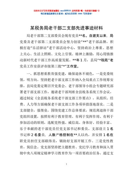 / 某税务局老干部二支部先进事迹材料