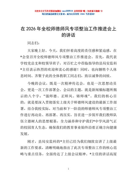 / 在2026年全校师德师风专项整治工作推进会上的讲话