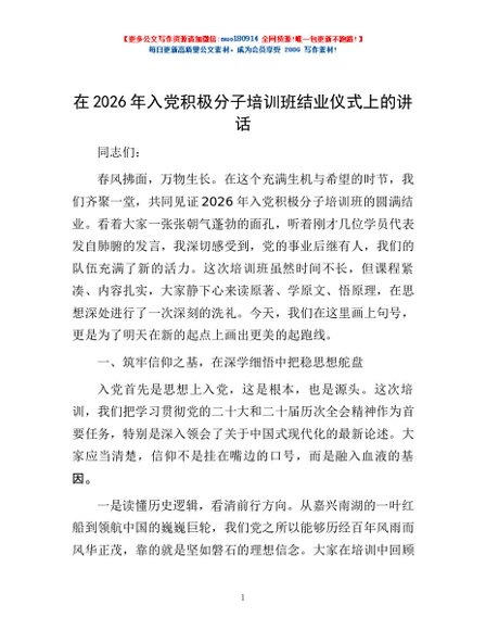 / 在2026年入党积极分子培训班结业仪式上的讲话