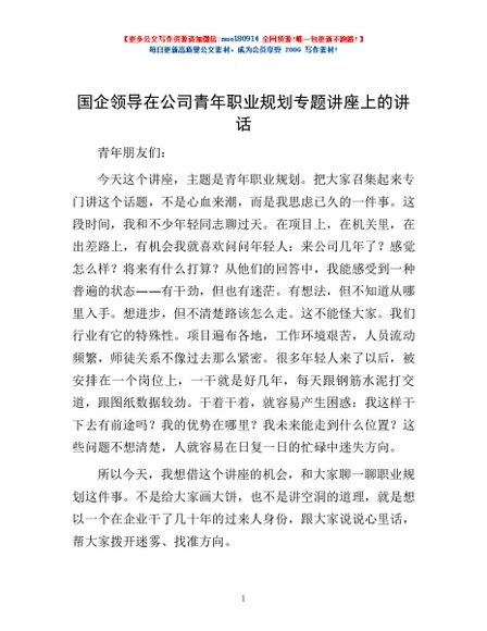 / 国企领导在公司青年职业规划专题讲座上的讲话