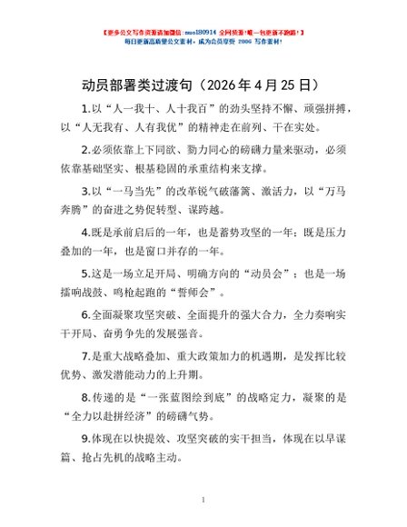 / 动员部署类过渡句(2026年4月25日)
